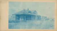 Depicts a small brick railroad station, with decorative dormers protruding from the hipped roof. To see an identical design,