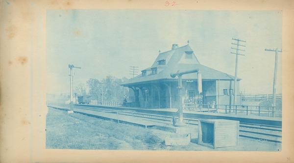 Depicts a small railroad station adjacent to the B & O tracks in Havre de Grace. For views of similar station designs see