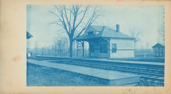 Depicts a small, one room station. For views of similar station designs, see Harford Station (P.9945.21); Aiken Station (P.9945.35);