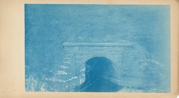 Depicts Ship Creek flowing through a large, single stone culvert.