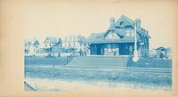Depicts a Queen Anne-style, shingle-covered station in Prospect Park. For views of similar station designs, see Stepney Station