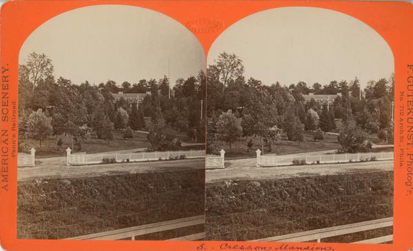 View of the concealed Mountain House within Cresson Springs Resort near Cresson Station. The Pennsylvania Railroad owned the