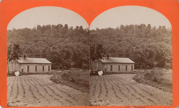 Depicts a building near the railroad tracks, possibly a train depot near the Walls stop. |