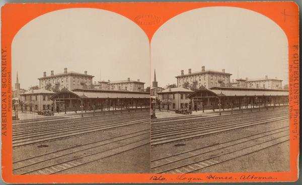 Depicts the four-story Logan House hotel, built 1852-53 by Pennsylvania Railroad carpenter foreman Thomas Burchinell. View