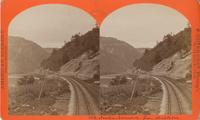 Landscape view of railroad tracks in Jacks Narrows, running parallel to the Juniata River.