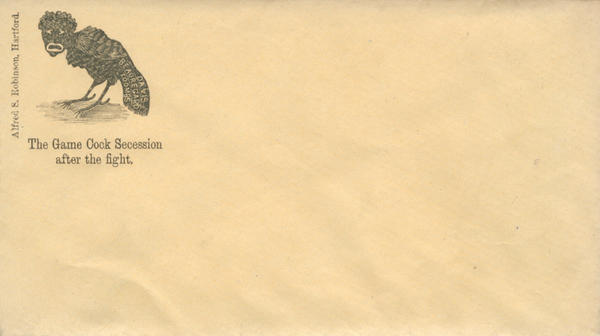 Image: A bird has a humanized head, with frowning features. Inscribed in the tail feathers are the names Davis, Beauregard,