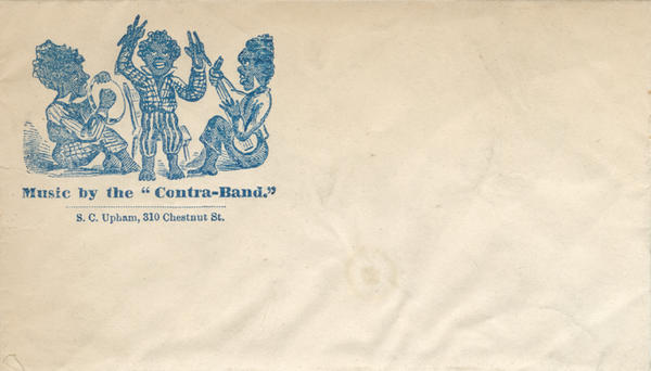 and banjo, respectively, and the child stands and plays unidentifiable instruments in the middle. Refers to the contraband