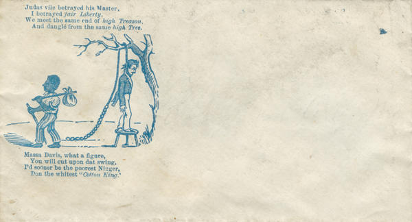 Verse 1185: Judas vile betrayed his master, I betrayed fair Liberty. We meet the same end of high treason, and dangle from the same high tree. Massa Davis, what a figure, you will cut upon that swing. I'd sooner be the poorest Nigger, den the whitest "Cotton King."