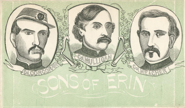 Image: Depicts three bust portraits of Irish Union soldiers, including Michael Corcoran, James Mulligan, and Thomas Meagher.