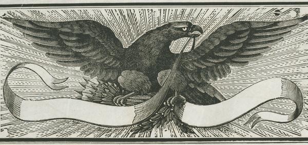Eagle with banner woodcut