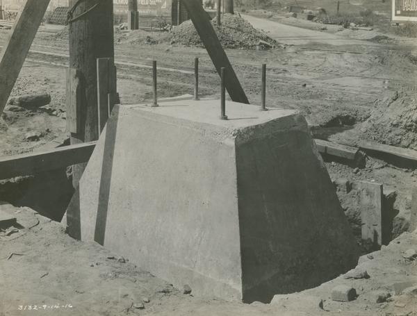 Column foundation construction, fifth stage concrete foundation uncovered, September 14, 1916.