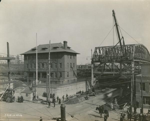 Progress of steel construction in Kensington Ave., Perspective of Kensington Ave. & Lehigh Ave., looking north, Oct. 23, 1916.
