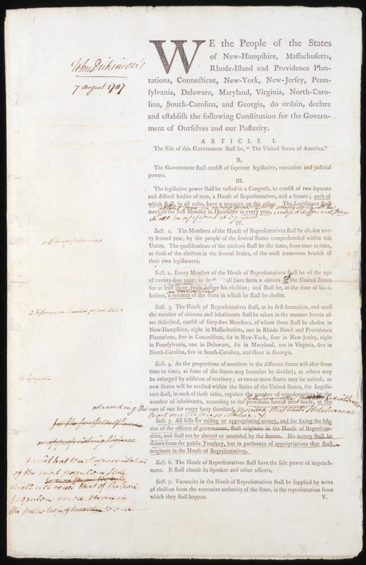 First printed draft. John Dickinson's copy with his manuscript notes. Gift of Robert R. Logan, 1943. |