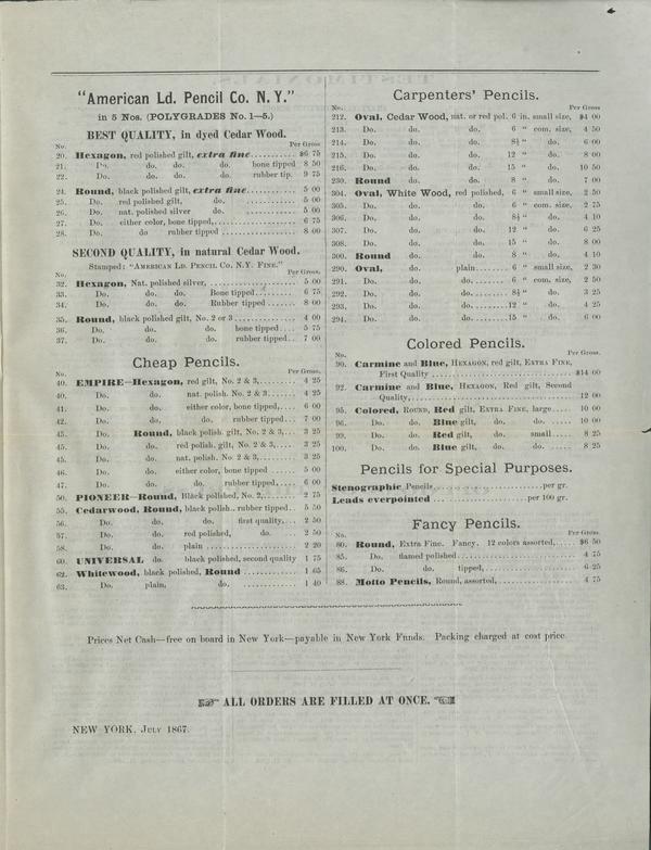 Trade price-List of the American Lead Pencil Co., New York.