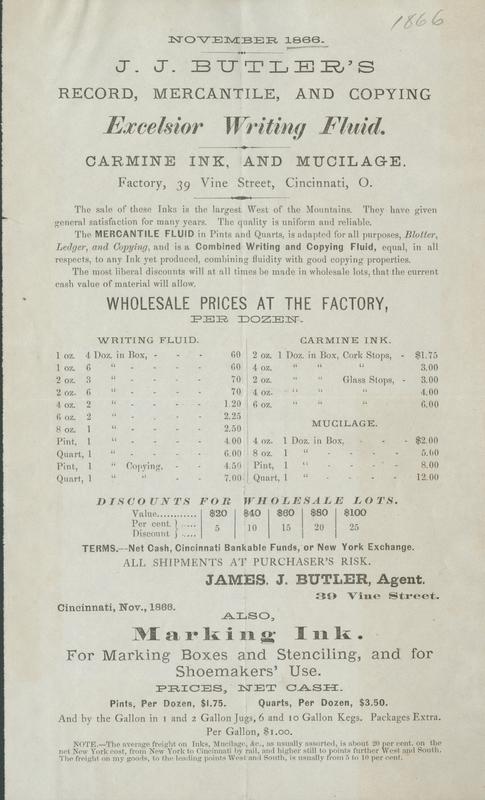 J. J. Butler's record, mercantile, and copying excelsior writing fluid..