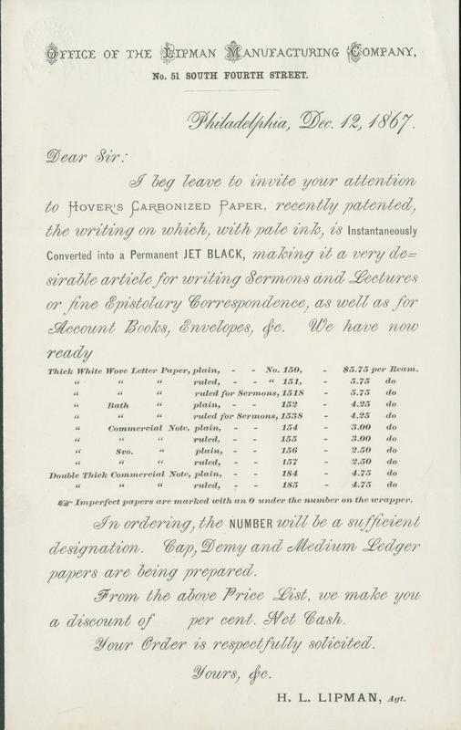 Office of the Lipman Manufacturing Company, no. 51 South Fourth Street.