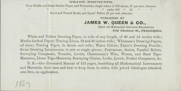 Circular for paper and mathematical instruments. |