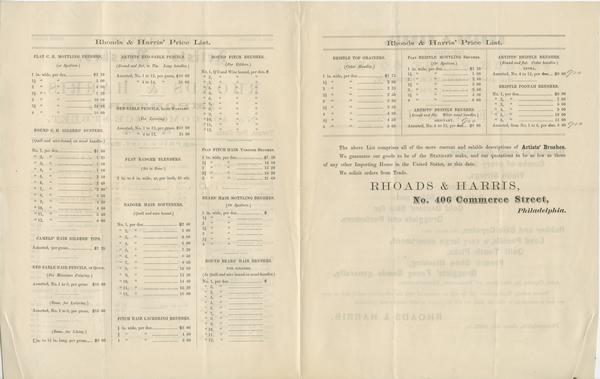 Price list of artists' brushes.