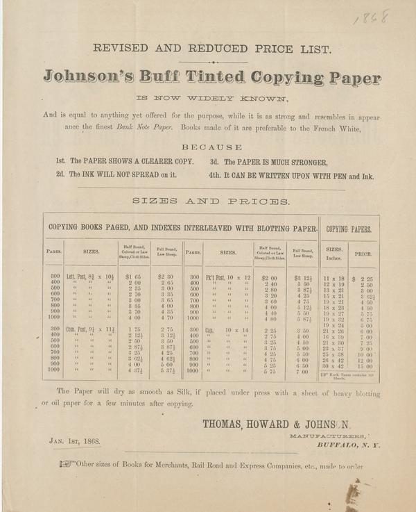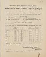 Price list for Johnson's buff tinted copying paper.