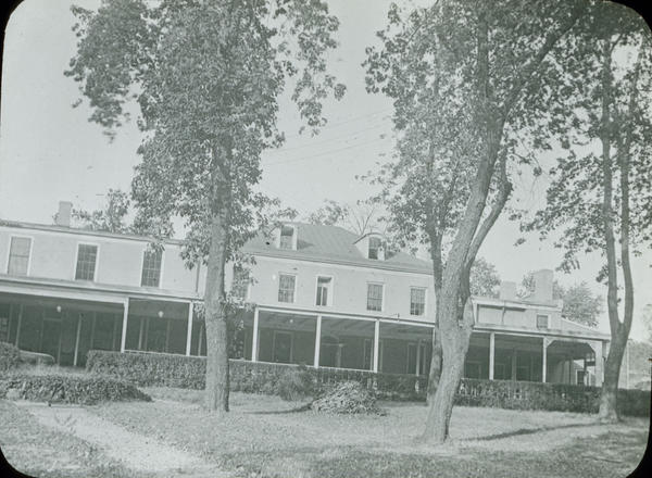 Exterior view of unusually broad, two-story mansion. Occupied by a beer garden operated by John F. Betz some time after 1880.