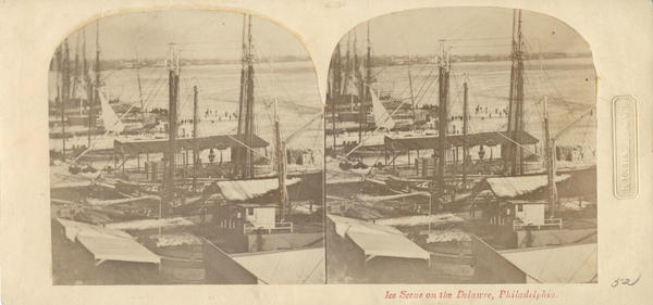 Arcadia caption text: Mother Nature suspended commercial and passenger activity on the Delaware River in this c. 1860 winter