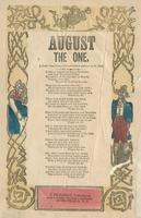 It was on August the first of Novimber [sic] (8 vs.) A Comic Song Sung with unbounded applause by M. Cox; publ. De Marsan (4). De Marsan military cupid border, col. 24.6 x 16 cm.