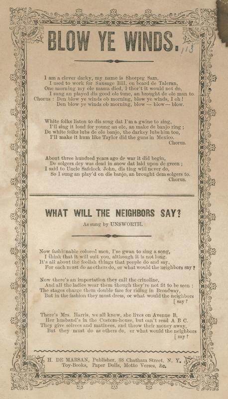 American Song Sheets, Slip Ballads and Poetical Broadsides Collection, 1850-1870. |