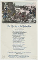The boy lay on the Battle-plain (3 vs.) Air: The Kiss dear Maid. By John Ross Dix; advs: Ten illustrated Songs, and 500 Illustrated Ballads [publ.] Magnus (2). Letter paper; blue ink; hdpc. Magnus 126, col.; publ. Magnus (1). 20.3 x 12.7 cm.