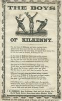 Oft, the boys of Kilkenny are brave roaring blades (5 vs.) Publ. Johnson (2); adv: Johnson has 600 different kinds of Songs. T. o. border; three comic figures. 19.3 x 13 cm. (cropped)