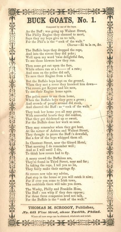 As the Buff: was going up Walnut Street (11 vs.) Composed by one of the boys; publ. Scroggy (2). T. o. border. 24.4 x 12.2 cm.