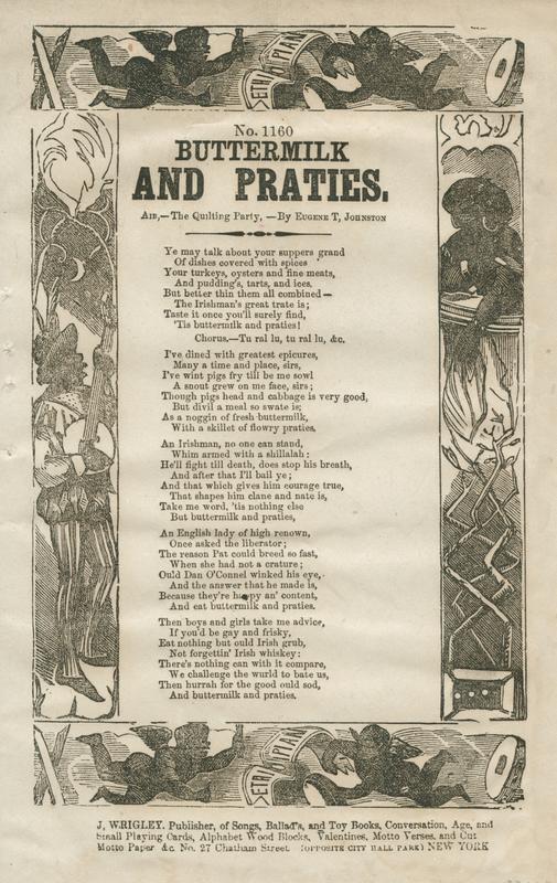 Ye may talk about your suppers grand (5 vs. and chor.) Air,—The Quilting Party. By Eugene T. Johnston; sheet no. 1160; publ. Wrigley (1). Wrigley Ethiopian border. 23.5 x 15.7 cm.
