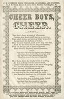 Cheer boys, cheer, no more of idle sorrow (2 vs. and chors.) Publ. Johnson (2); adv: Cards, Circulars, Billheads, etc. T. o. border. 23.7 x 15 cm.