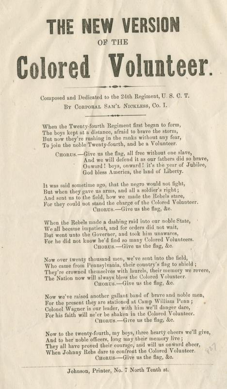 When the Twenty-fourth Regiment first began to form (6 vs. and chor.) Composed and Dedicated to the 24th Regiment, U.S.C.T. By Corporal Sam'l Nickless, Co. I.