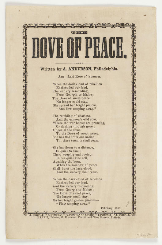 When the dark cloud of rebellion (4 vs.) Air—Last Rose of Summer. Written by A. Anderson, Philadelphia, February, 1863; print. Harris. T. o. border. 22.7 x 14.7 cm.