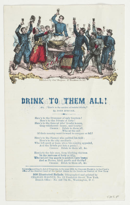 b. Cop: 1864, Charles Magnus, SDN.Y. Letter paper; blue ink; hdpc. Magnus 179, col.; publ. Magnus (1). 20.5 x 12.5 cm. |