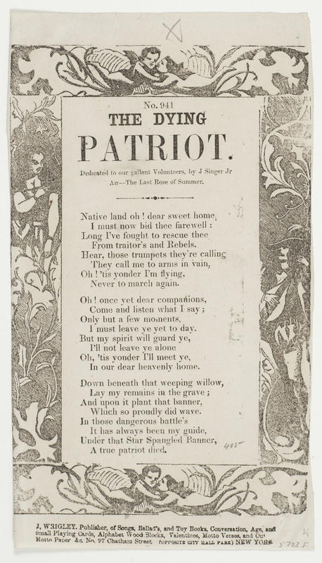 b. Dedicated to our gallant Volunteers by J. Singer, Jr.; sheet no. 941; publ. Wrigley (1). Wrigley kissing cupids border.