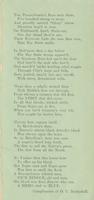 Oh! Massachusetts rich in lore (10 vs.) [Signed] Compliments of O. C. Bosbyshell. Light green paper; printed on both sides. 20.5 x 10.3 cm.