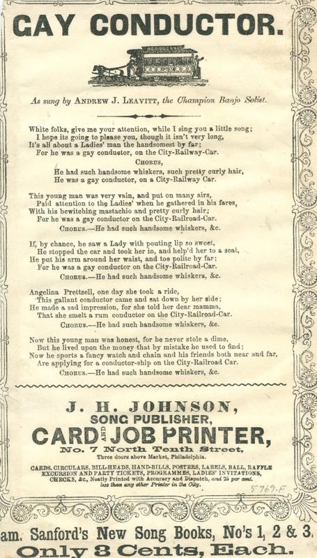 a. Title: "Gay Conductor On the City-Railroad-Cars"; As Sung by Lewis Simmons, the favorite banjoist, at the Melodeon, 539