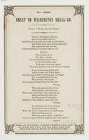 Grant to Washington shall go (4 vs. and chor.) Tune.—"Tramp, Tramp, Tramp." Sheet no. 1098; publ. and sold by Partridge (2). Double-line border with ornamental corners. 20 x 12.7 cm.