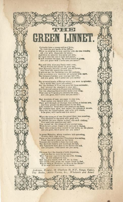 American Song Sheets, Slip Ballads and Poetical Broadsides Collection, 1850-1870. |