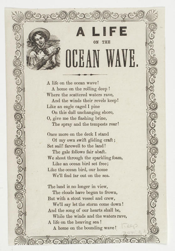 A life on the ocean wave (3 vs.) A-J border; bust of sailor with oar in hands. 20 x 13.5 cm. (cropped)
