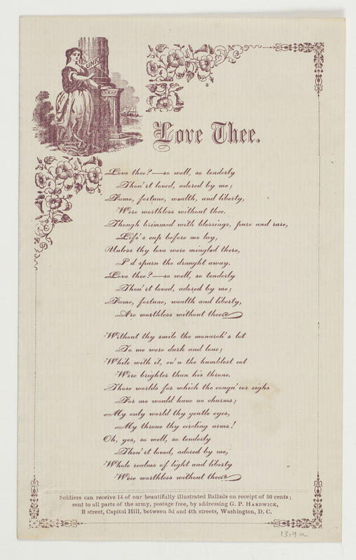 a. Adv: Soldiers can receive 14 of our beautifully illus- trated Ballads [publ.] G. P. Hardwick (1). Letter paper; purple