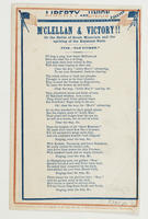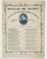b. With 12 vs., and comma after "song" in first line; cop: 1862, J. Magee, EDPa. Letter paper; blue ink; t. o. border; bust of McClellan. 25 x 18.5 cm.