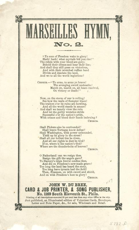 a. Publ. John W. Du Bree; adv: an Illuminated edition of Volunteer Cards, etc. Double-line border with fleuron corners. 24