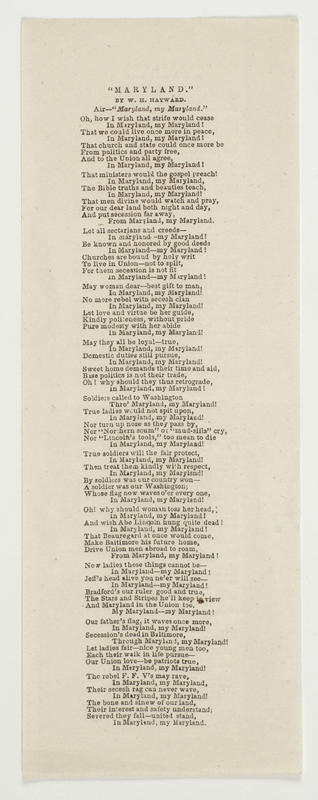 Oh, how I wish that strife would cease (11 vs.) Air—"Maryland, my Maryland." By W. H. Hayward. 24.1 x 8.9 cm.