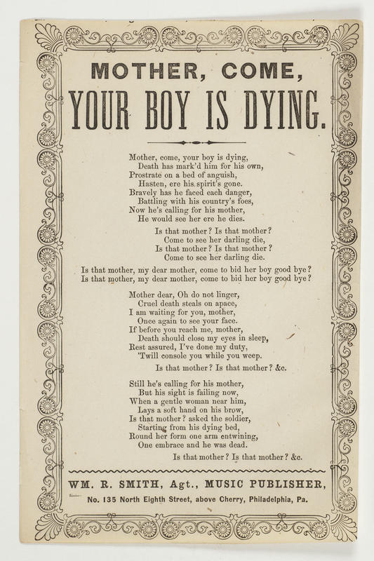 Mother, come, your boy is dying (3 vs. and 2 chors.) Music publ. by Wm. R. Smith. A-J border. 20 x 13.2 cm.