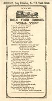 a. Title; "Hold Your Horses"; Music obtained of Berry and Gordon; print. Andrews. T. o. border. 22.7 x 15 cm.