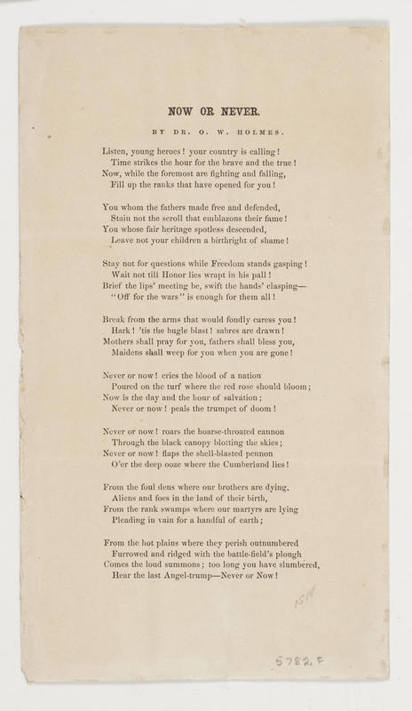 Listen, young heroes! your country is calling (8 vs.) By Dr. O. W. Holmes. 20.5 x n.6 cm.