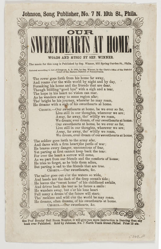 American Song Sheets, Slip Ballads and Poetical Broadsides Collection, 1850-1870.