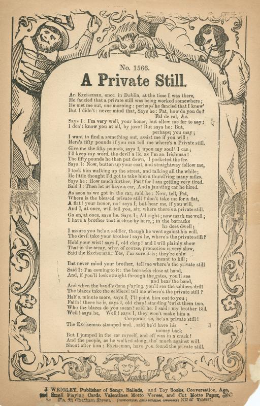 An Exciseman, once, in Dublin, at the time I was there (10 vs.) Sheet no. 1566; publ. Wrigley (3). Wrigley Pat and Mike Border. 24.3 x 15.4 cm.